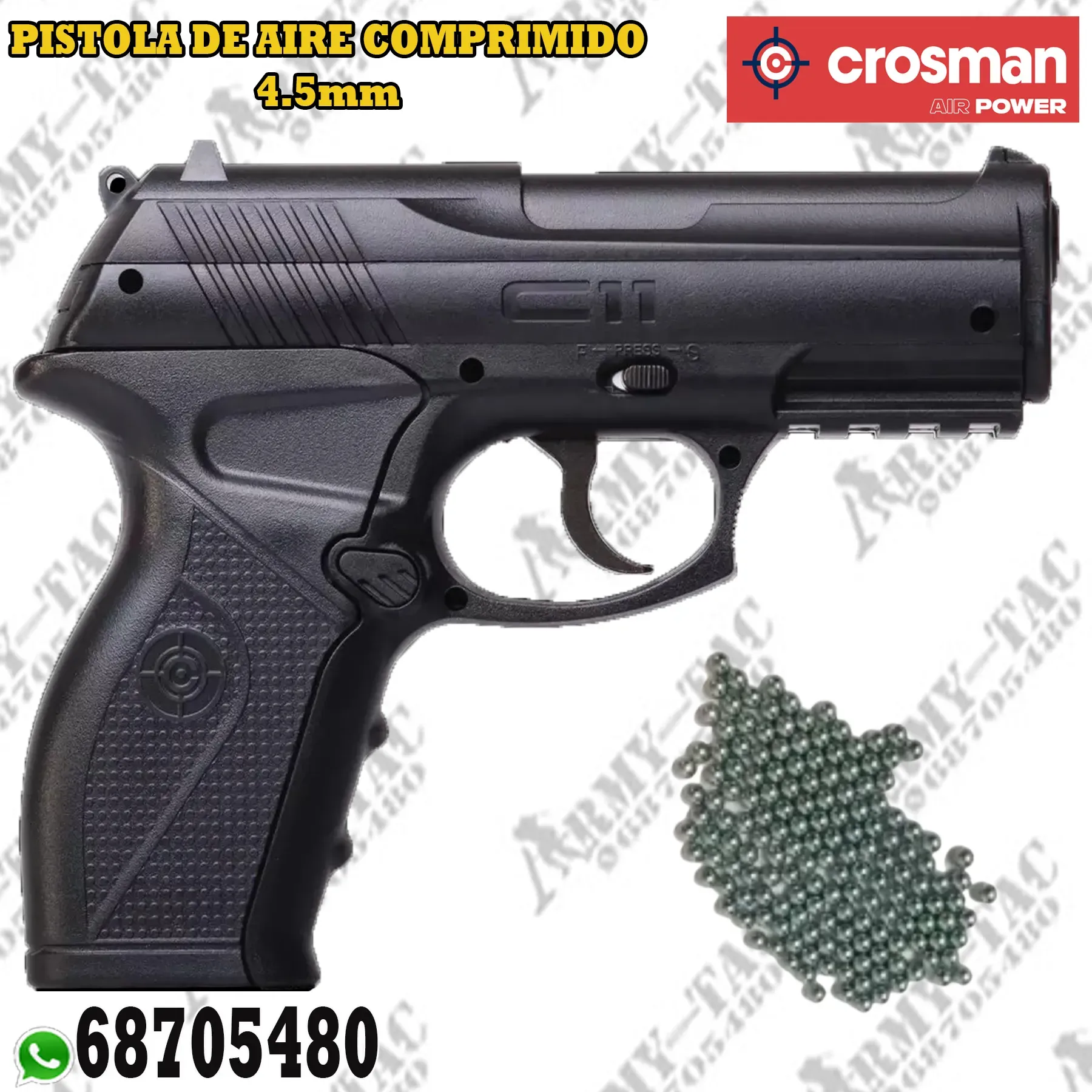 C11 es una pistola BB de 4,5 mm alimentada con CO2 : esta pistola semiautomática alimentada por CO2 combina comodidad de mano con componentes de calidad a un precio asequible. Cuenta con una velocidad de hasta 480 pies por segundo y un riel accesorio debajo del cañón. C11 también cuenta con un carga...